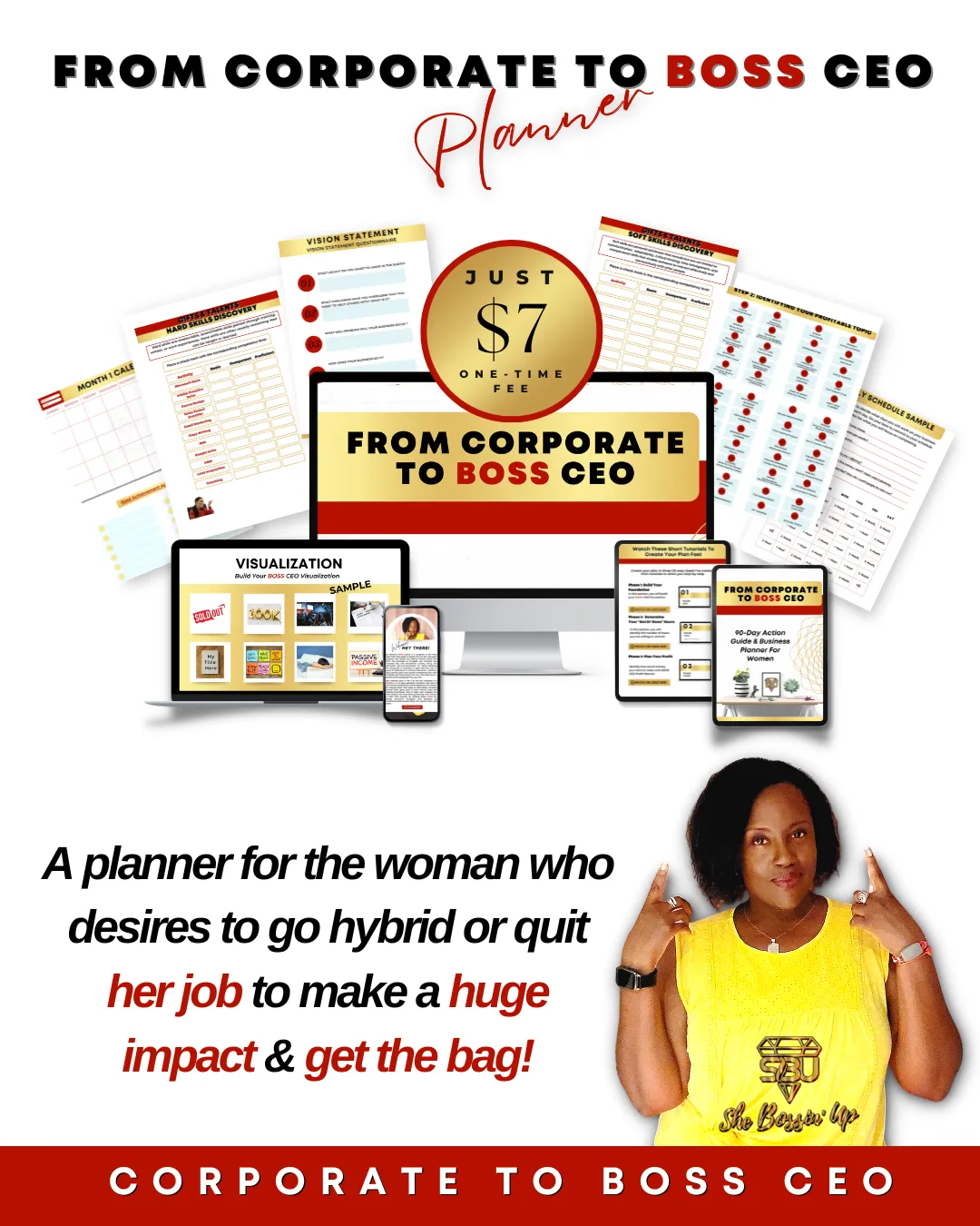 You've found it too difficult to divide your time between working your 9-5 and working on your dreams, but you still can't ignore that you want to be the BOSS CEO of your own business and experience the freedom that comes with it.