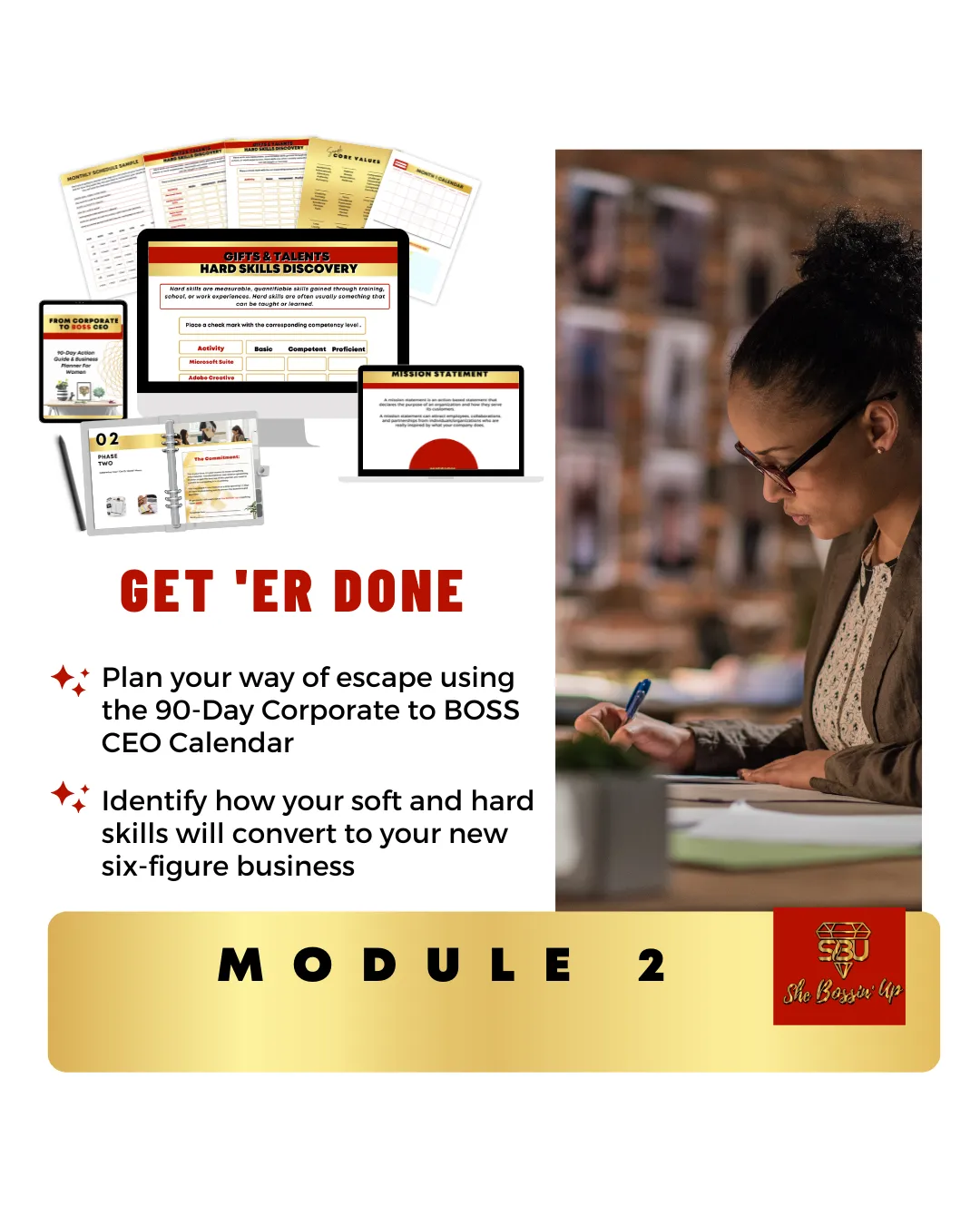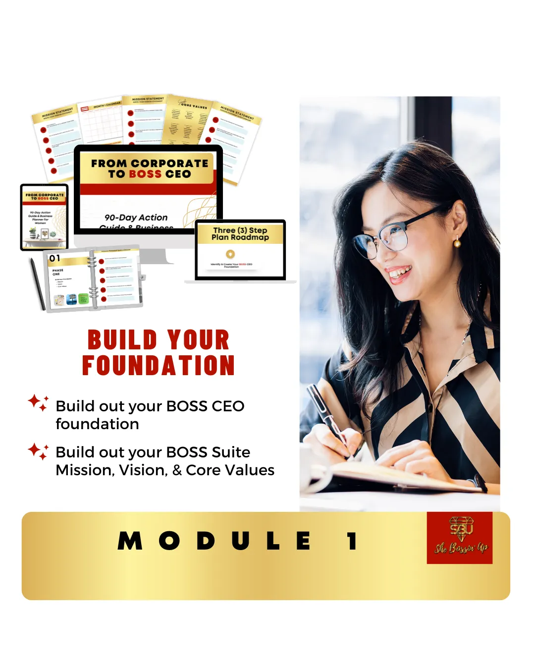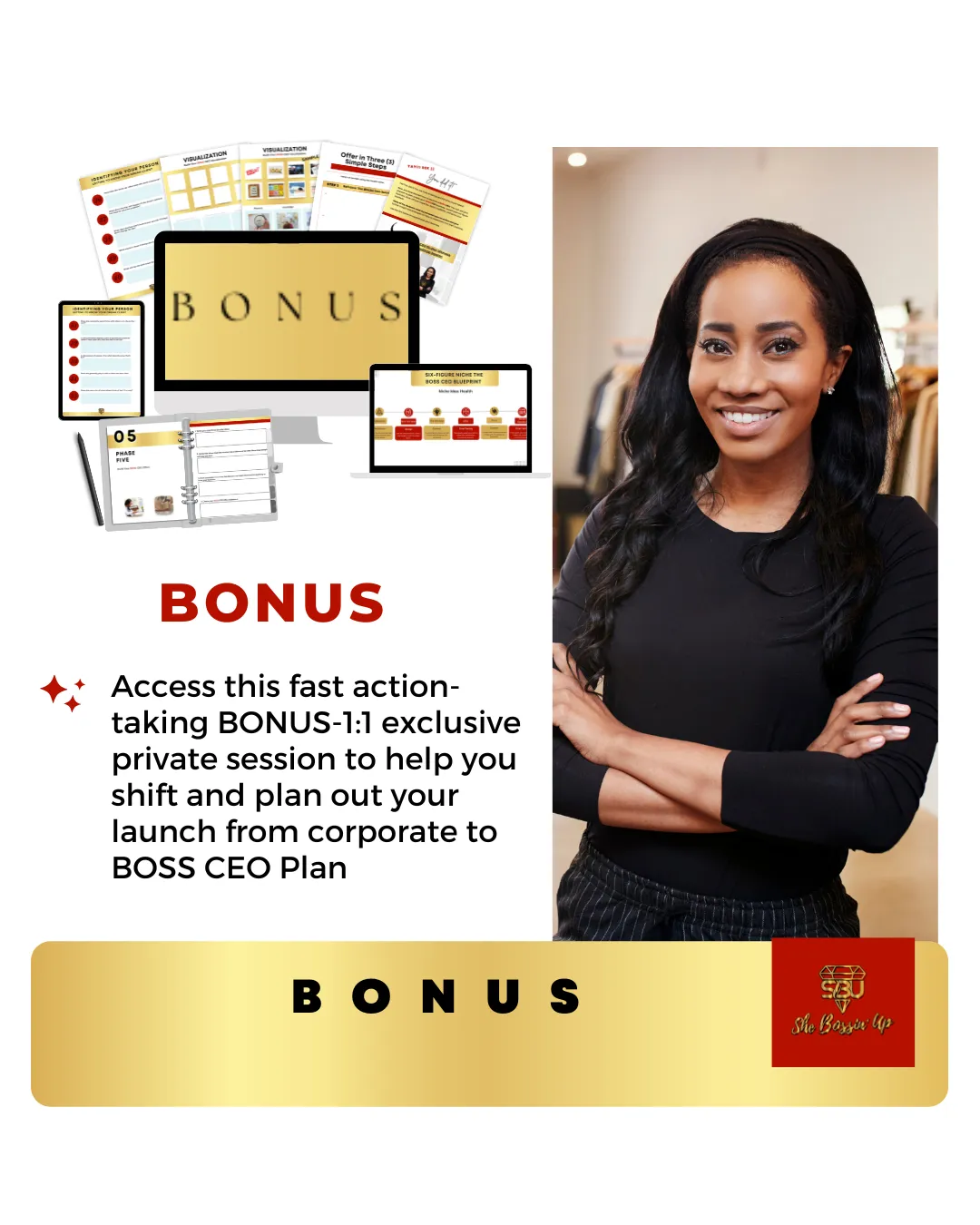 Use our proven framework, From Corporate to BOSS CEO, a five-action-by-action (so you never feel alone) system to help you break free from building someone else's dream and start taking control and choose the date to develop your BOSS CEO business.